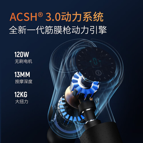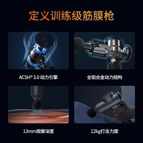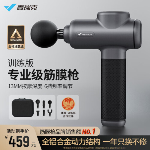 MERACH 麦瑞克 专业级筋膜枪 9D1S,是一款专业级的筋膜枪,采用ACSH3.0 120W无刷电机,全铝合金结构,击打力达12公斤,13mm深层按摩,轻松穿透大肌肉群。5级只能按压感应系统,自动调节力度。按摩头采用硅胶包裹,缓震防护,避免疼痛感。