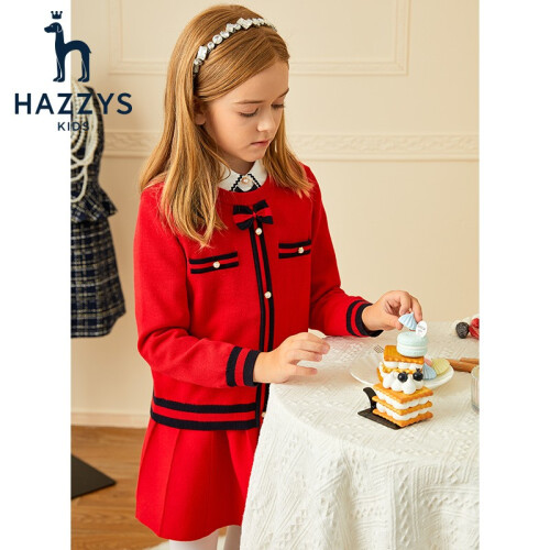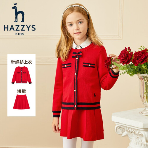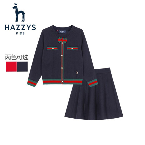 HAZZYS 哈吉斯 女童针织套裙 2件套,柔软亲肤,不易变形不易起球,微收罗纹下摆有型利落不显臃肿,简约短裙条状,肌理富有层次感,丰富视觉,美观拒绝单调。