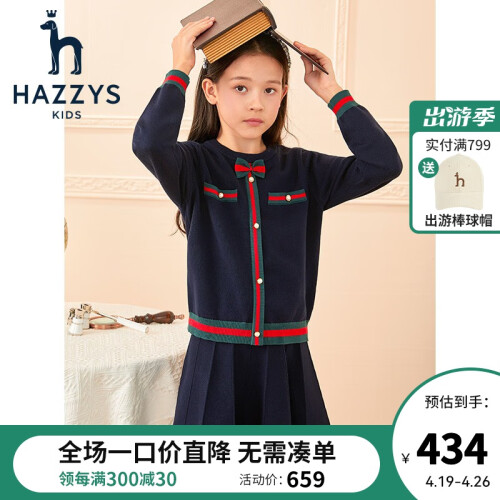 当前的位置: 首页 > 今日值得买 > HAZZYS童装女童套装儿童套裙秋新品针织衫+裙子二件套中大童裙子套装女 藏蓝 110