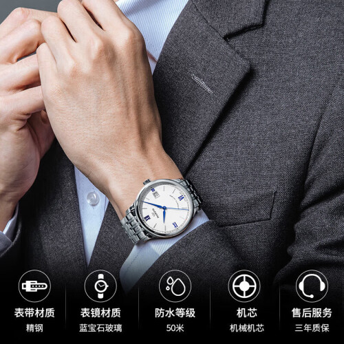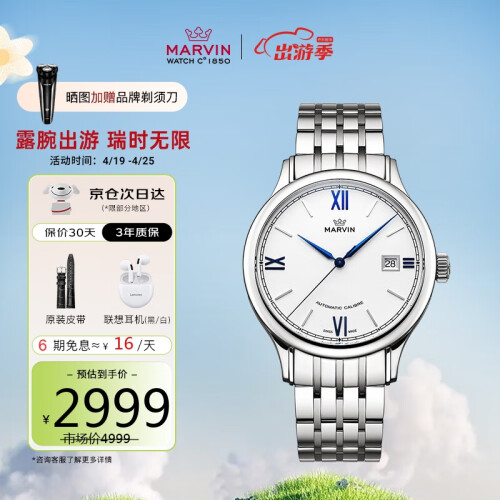 摩纹(marvin)根正苗红的瑞士品牌,历史悠久,始创于1850年。这款表直径38,适合手腕较细的朋友,做工精致,SW200的机芯,日常用足矣。摩纹表也属于这两年品牌溢价较少的牌子,看目前趋势是打算在国内扩大市场,所以价格比较亲民,虽小众但档次不低。”典雅蓝钢指针搭配罗马条钉时标,百年红8DNA印记,3时位日历方窗显示,在人工合成蓝宝石水晶表镜下,清晰可见。三叉皇冠标记浮雕在螺旋纹表冠上,精钢抛光质感工艺,10.4MM表壳厚度彰显佩戴者的从容自信。人工合成蓝宝石玻璃,316L精钢表带。