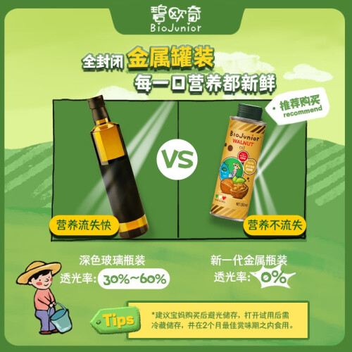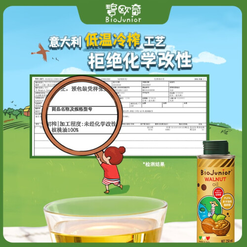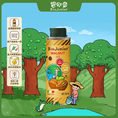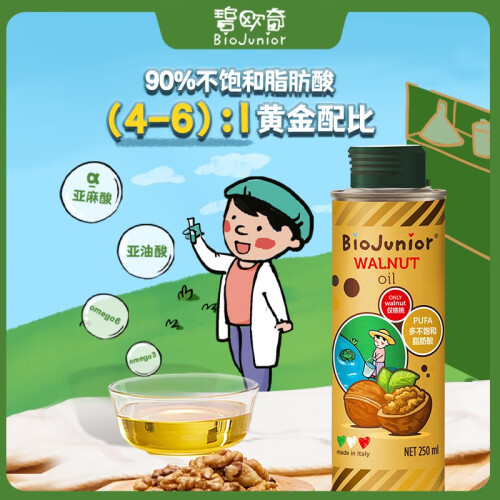 碧欧奇 意大利进口核桃油,100%纯核桃,安全无添加,物理压榨,保留营养,无化学残留。4.8:1黄金配比,优质好油,为宝宝大脑加油,营养健脑核桃油,低温冷压榨,保留营养元素。黄金配比营养易吸收,多重检测安全放心