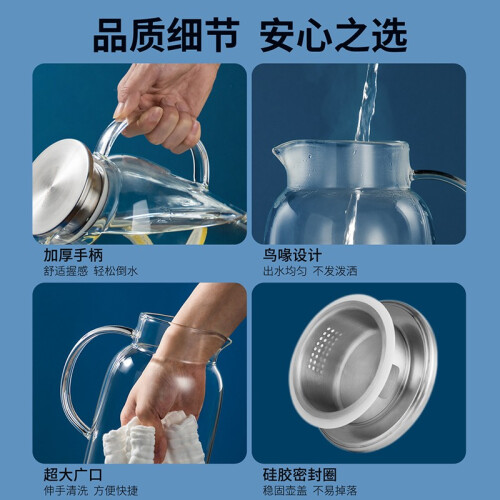 无铅无味,宝宝也能放心,喝食品级原材,不含铅汞健康安心。A级高硼硅玻璃,骤冷骤热不怕裂。304不锈钢壶盖,双出水口设计,大口出水流畅,小口出水细腻。