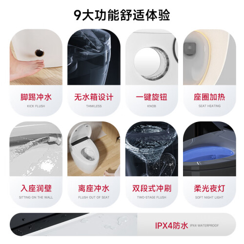 浪鲸这款一体式智能马桶,采用虹吸式冲水,冲洗时将污物卷入旋涡水流中,有效避免溅水。拥有4种清洁模式,支持温水妇洗、臀洗、移动清洗、儿童清洗。座圈支持30℃-40℃四档温度可调,夏季不热冬季无冰刺激冷感。外置液晶显示屏,功能状态实时显示。