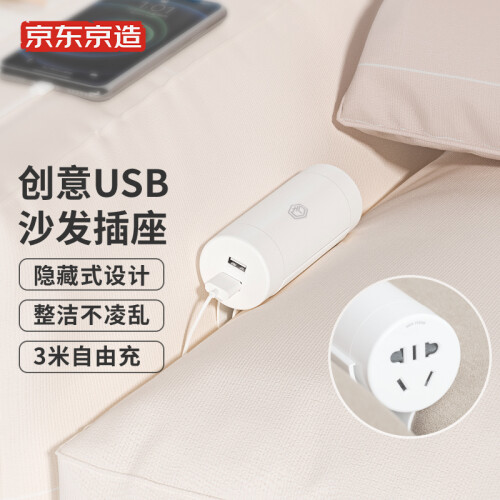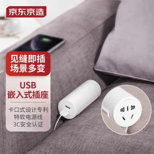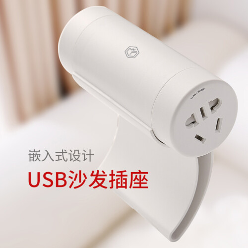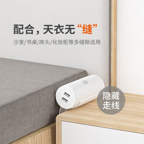 嵌入式设计,隐形的沙发能量站,圆润卡脚嵌入沙发缝隙,隐藏电源线走线保持沙发洁净美观,提供1位电源和2位USB接口,满足手机、笔记本等日常产品的使用。