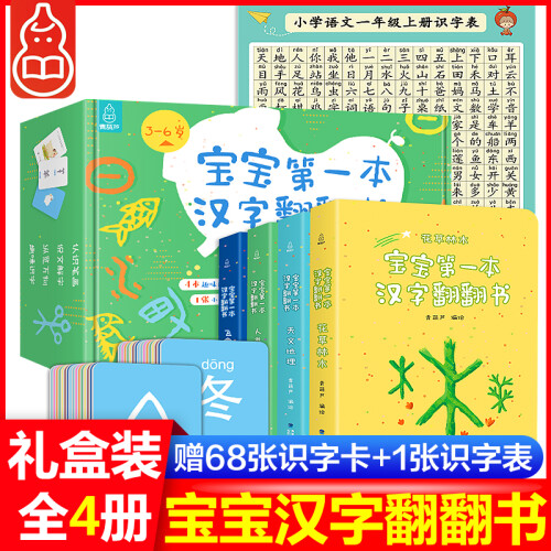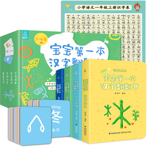 全套4本趣味汉字翻翻书,涉及内容包括:“飞禽走兽”“花草林木”“人类文明”“天文地理”,让宝宝在翻阅时纵览万物。不仅有字形展示,更有说文解字释义、汉字笔画、汉语拼音和英文标注。68张汉字识字卡,随看随学。随书附赠“小学语文一年级上册常用汉字表”,为入学做好准备。
