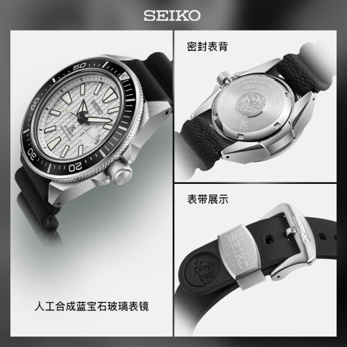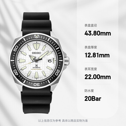 SEIKO 精工 Prospex系列 43.8毫米男士自动上链腕表,蓝宝石水晶玻璃无反射涂层处理,能够更加透亮清晰;日历框采用放大镜设计,提升易读性。螺旋底盖,防水性能好,品牌专属背刻,彰显时尚品质。200米防水,可用于游泳。指针和时标采用精工特色的智慧光能环保发光材质,发光持续时间长,手表在黑暗处也可以读数清晰。