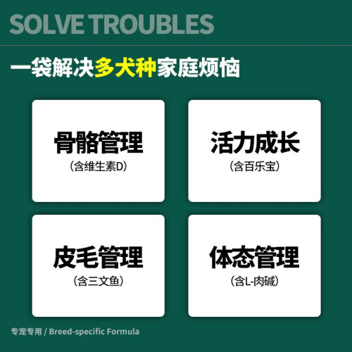 此款狗粮适用中大型犬,精选优质三文鱼,含有大量优质蛋白和不饱和脂肪酸,营养丰富,滋养皮毛。保护关节,健康骨骼;护牙洁齿,口腔健康,低敏配方,保护肠道。规格:15kg。