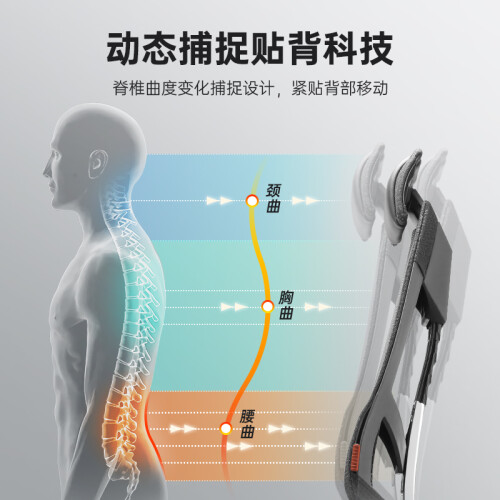 腰部支撑捕捉,紧贴背部移动,动态式为使用者提供背部移动支撑。