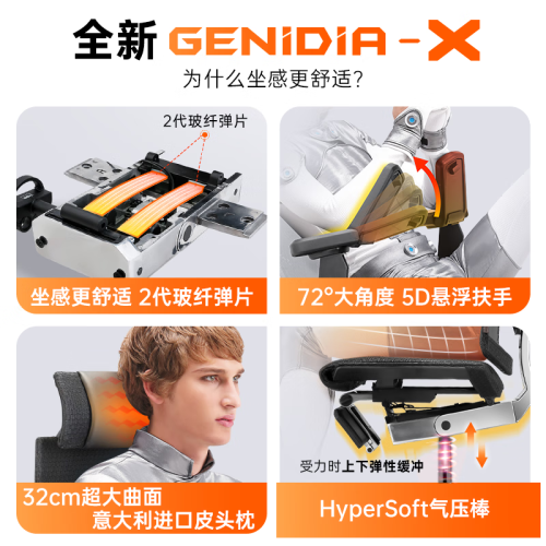 Ergonor 保友办公家具 基尼迪亚X 智能人体工学椅 5D悬浮扶手+真皮头枕+躺舒宝现新品上市。
