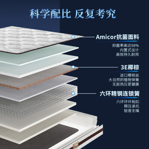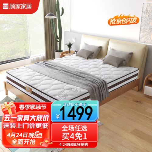1982年成立的顾家家居,主打客厅及卧室家具,其沙发、床等软体家具相信很多网友都有过不错体验。这款顾家DK.M1001邦尼尔整网弹簧椰棕床垫 ,22厘米厚度,采用东南亚椰棕,天然环保。AB双面可用,B面面料升级为3d科技面料一面亲肤,一面透气。床垫围边采用撞色设计,外观精致滚边,防撞转角设计;六环精钢连锁弹簧支撑,填充东亚海绵,两面可睡。床垫尺寸:1.5*2米,1.8*2米。
