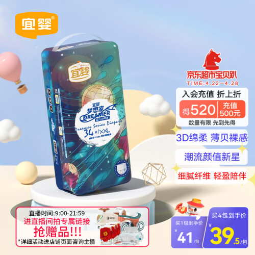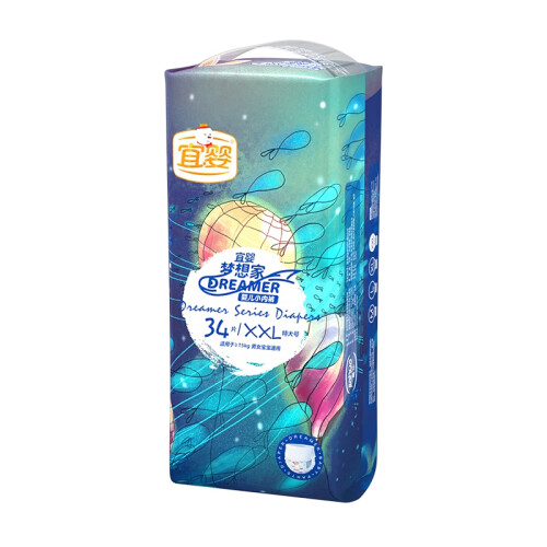 宜婴 梦想家 婴儿拉拉裤 XXL34片采用0.2cm薄贝裸感芯体,创新升级薄贝裸感芯,360°循环透气系统,更轻薄,更洁净,更透气。