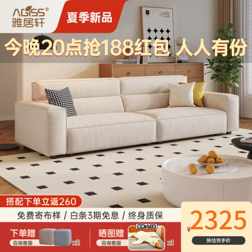 雅居轩布艺沙发2.2m大双人位是一款高品质的沙发,采用优质的材料制成,具有舒适的座椅和坚固的结构。它的设计简约而精致,适合各种家居风格。该沙发采用高密度的海绵填充,提供舒适的坐感和支撑力,同时也具有较好的弹性,不易变形。沙发的表面采用高品质的布料覆盖,手感柔软,具有良好的透气性和耐磨性,易于清洁。沙发的外形简约流畅,线条清晰,整体造型时尚而大方,能够为家居带来更多的美感和舒适感。