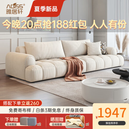 雅居轩意式奶油风布艺沙发是一款精致、舒适的双人位沙发。它采用高品质的布艺材料,手感柔软舒适,质地细腻,色彩鲜艳。沙发的设计灵感来自意大利奢华家居风格,简约而不失优雅,具有很高的美观性和实用性。 该沙发采用高密度弹簧和高弹性海绵填充,可以提供舒适的坐感和支撑力,让您在休息和娱乐时都能得到极佳的舒适体验。此外,沙发的外观设计也非常精致,有着流畅的线条和精致的细节处理,整体风格时尚简约,适合各种家居装饰风格。 总之,雅居轩意式奶油风布艺沙发是一款优质的双人位沙发,不仅舒适耐用,而且设计精美,是您家居装饰的不二选择。