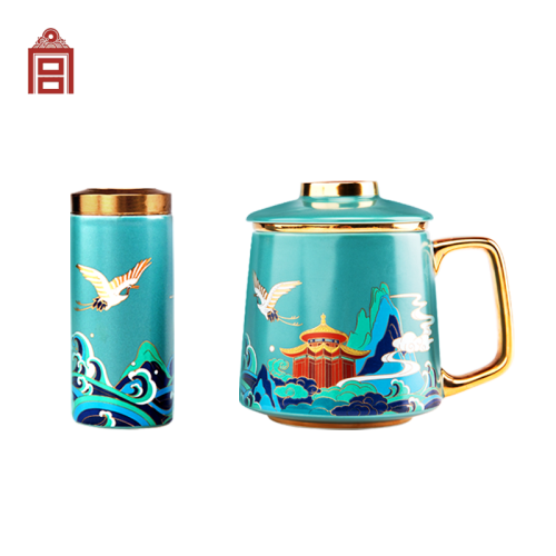 本产品创意灵感来源于故宫博物院御花园万春亭与广绣鹤鹿同春图,万春亭是御花园中标志性的建筑,色彩绚丽,造型精美。