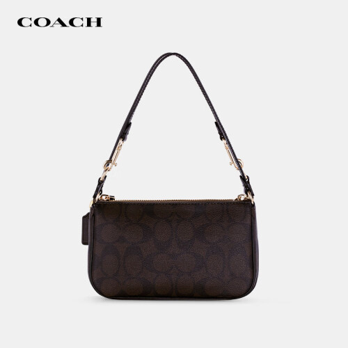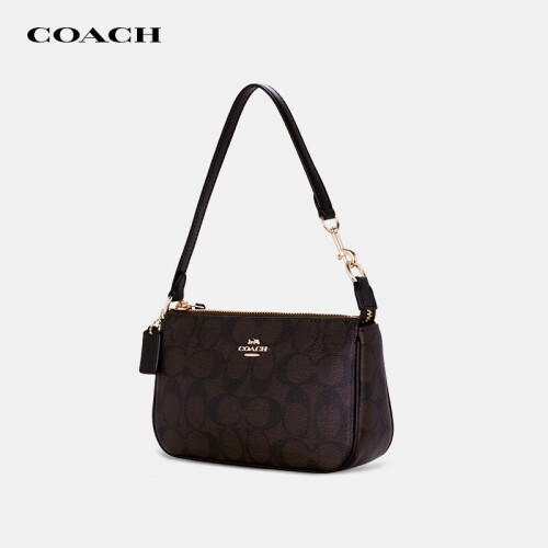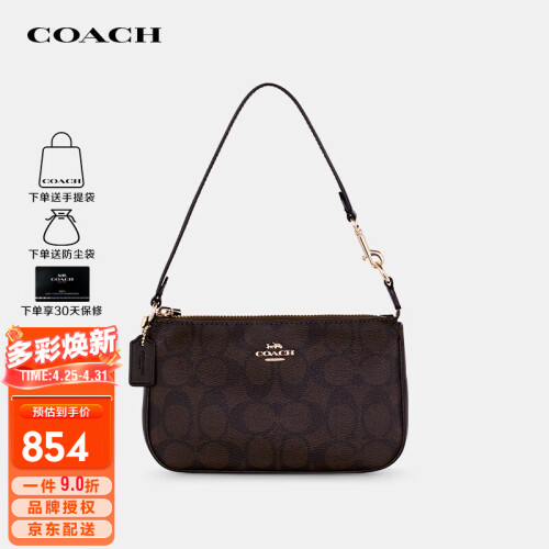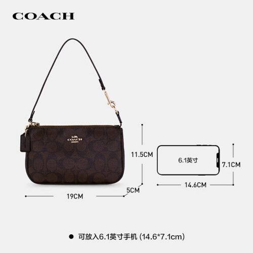 COACH 蔻驰 女士手拿钱包 C3308IMAA8,标志性涂层帆布和光滑皮革,两个信用卡槽,内侧多功能口袋,顶部拉链封口,织物衬里,垂直长度16cm提手,19cm(长)×11cm(高)×5cm(宽)。