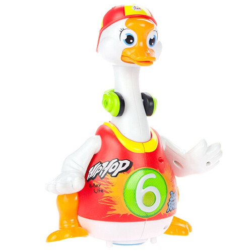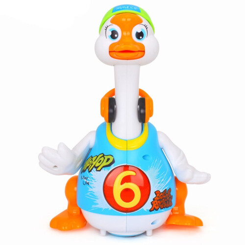 摇摆鹅在跳舞的过程中,三首音乐和内容按顺序播放。摸一摸摇摆鹅肚子或牵手,可以带着宝宝学习《三字经》、背唐诗《咏鹅》,还能唱劲爆的歌曲,讲生动的故事。遇障碍物可自主转向,宝宝不在玩的时候,摇摆鹅会自动进入休眠,节省用电。