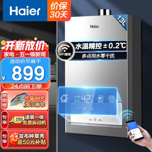 当前的位置: 首页 > 今日值得买 > 海尔(Haier)燃气热水器天然气即热双算法变频恒温家用速热WIFI智能五重过滤净化强排式热水器ECO一键节能 13升DKS【WIFI智控算法升级款】