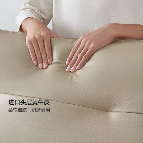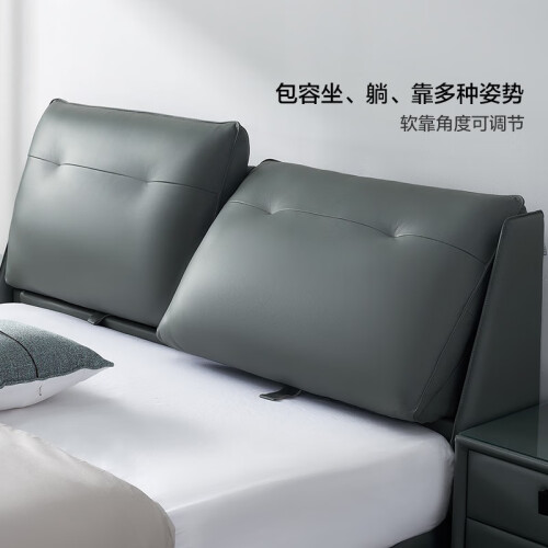 这款床软靠角度为可调节设计,填充内部填充微孔式高弹棉,立体纤维结构,纤维间隙处充满空气,弹力柔软;左右独立分区,坐、躺、靠多种姿势一床搞定,一人一靠、互不干扰;接触面为进口头层黄牛皮材质, 双USB充电接口,娱乐不断电。