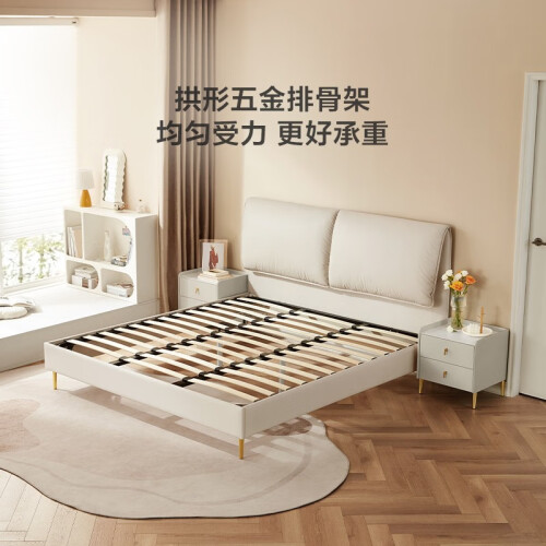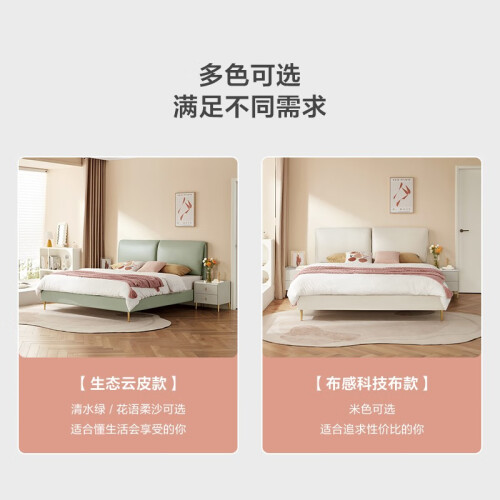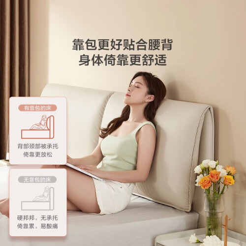 窄边床身省空间,小户型闭眼入;床身软包包边不易撞腿;挑高床底扫地机可自由进出打扫,质感五金脚,稳固承重,睡得安心。