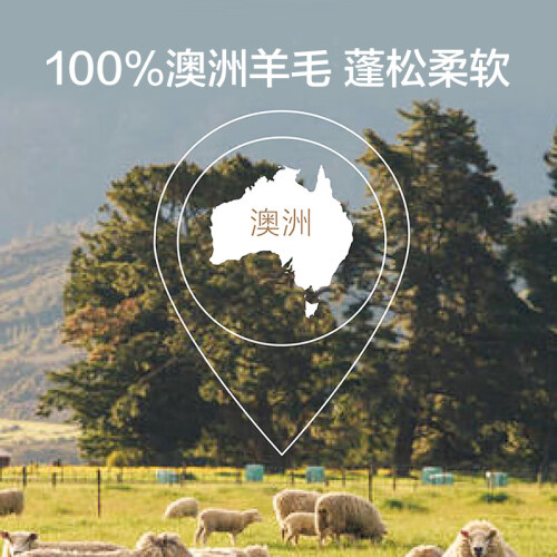 100%澳大利亚塘种羊毛,纤维卷曲柔软,蓬松柔软的亲肤质感。带给你远超普通羊毛的温暖舒适。具有较好的吸湿能力、恒温能力及天然的回弹性。精致绗缝工艺,不用为跑毛担心。贴合人体肩颈设计,有效防风御寒,高支高密防绒面料,睡着更舒适。背面采用75D鹅绒填充,温暖更持久。清水冲洗,清洗更方便,让你的睡眠更健康。