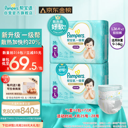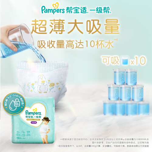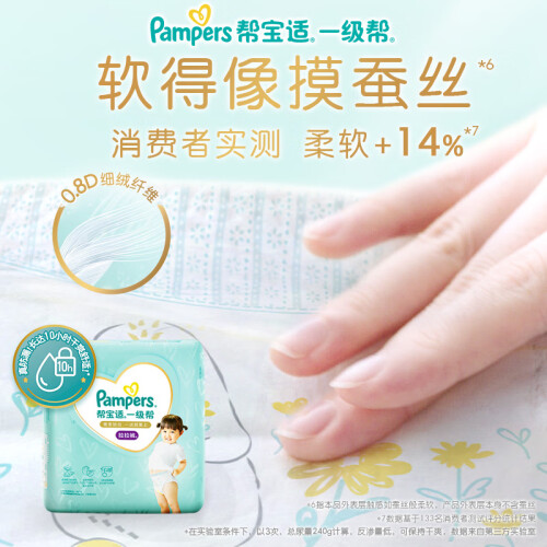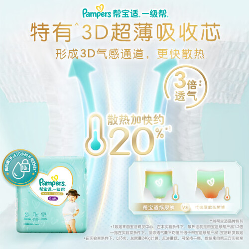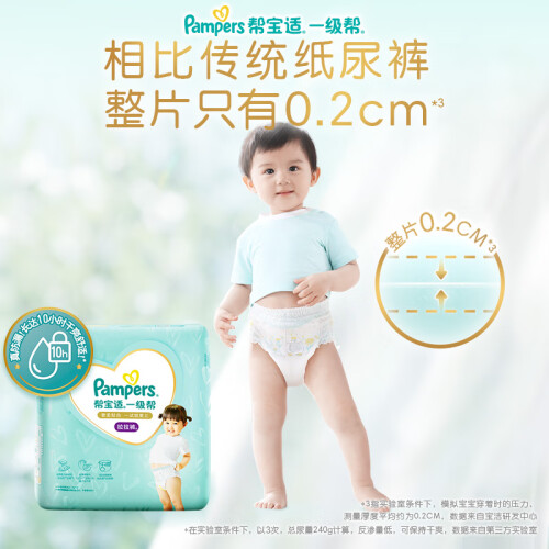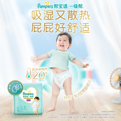Pampers帮宝适是宝洁旗下婴儿用品品牌。此款一级帮宝适为妈妈们公认好用的纸尿裤,拥有360°透气内外表层,轻薄透气,3D瞬吸孔内表层,可以快速隔离稀便,保证宝宝屁屁干爽,清晰的尿湿显示,何时更换尿布一目了然。