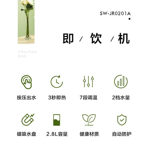 随喝随烧滴滴新鲜,全新即热饮水系统,一点,一按,就可享受到新鲜热水。“黑科技”纳米膜更健康地加热每一杯水。多种时刻都有贴心的水温照料,常温|40℃ | 50°C | 60℃ | 80℃ |90℃|开水。