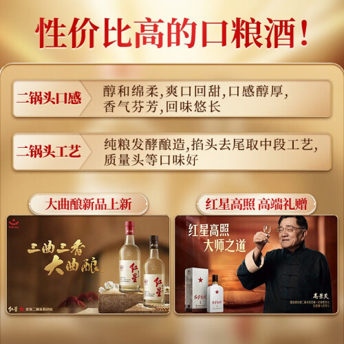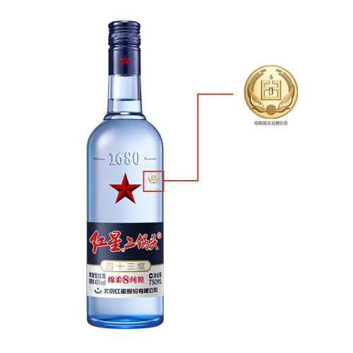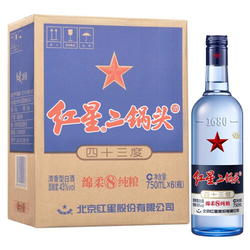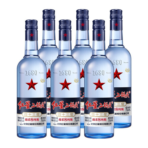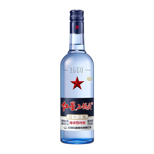 红星二锅头绵柔8是红星股份有限公司出产一款清香型的亲民光瓶产品。北京红星股份有限公司始建于1949年5月,是著名中华老字号企业和国家级非物质文化遗产保护单位。这款产品采用经过精挑细选的优质高粱、玉米、大麦、豌豆,再配以当地的优质水源,然后严格遵循国家级非物质文化遗产的“北京二锅头酒传统酿造技艺要求精心酿造而成。首先进行清蒸清烧,然后用老五甑工艺进行蒸馏,最后掐头去尾截取中段,留存第二锅酒,进行长年窖存。红星拥有蓝瓶、苏扁、青花瓷等系列产品,价位低廉。红星蓝瓶二锅头,外号蓝八,酒质清澈透明,气味香馥,醇厚甘冽,清香纯正,回味悠长。