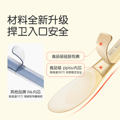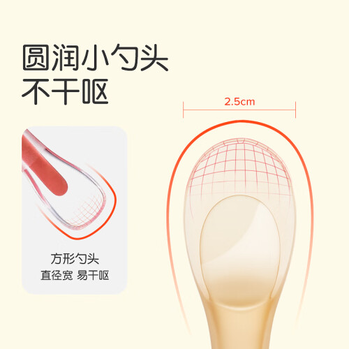 分时期喂养,更科学,新生儿+辅食,新手妈妈精细喂养。新生儿款,30°超软勺头,超软硅胶勺,不易伤口腔。辅食款,70°柔软韧性勺头,韧性硅胶勺,辅食更好舀。
