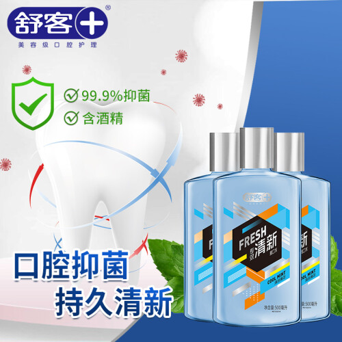 舒客(Saky)是广州薇美姿个人护理用品有限公司旗下口腔护理品牌,成立于2006年,其产品包括成人牙膏,成人牙刷,儿童牙膏,口腔护理工具等。这款Saky 舒客 漱口水,含有酒精成分,有效抑菌99.99%,快速吸附异味因子,可去除口腔异味,保持口气清新。同时还可抑制口腔细菌,强健牙龈,保持口腔清洁。