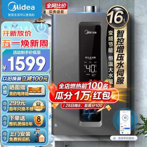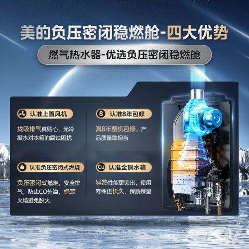 当前的位置: 首页 > 今日值得买 > 美的(Midea)燃气热水器天然气热水器即热增压水伺服强排变频恒温多点用水零干扰上门安装以旧换新智能家电RF3 16升JSQ30-RF3【精控恒温】增压63% 天然气