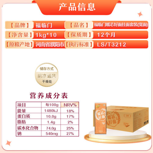 福临门暖芯好面,采用优质面粉,自有面粉厂制造,筋弹味美,面条耐煮易熟,散发浓郁面香。面香纯正,不易浑汤,不易断条。宜煮宜拌,筋道爽滑,居家常备,适合炸酱面、拌面、捞面等。