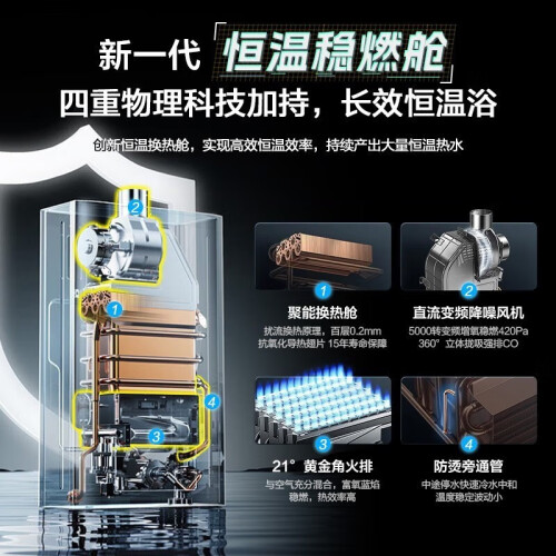 新升级MPC+ADRC双算法,快速精准运算,水温精控在±0.2℃,用水恒温舒适,创新升级直流变频风机和磷脱氧铜换热器,不惧高层大风挑战,解决冷凝水腐蚀难题,更恒温、 更高效、高抗风、更耐腐。