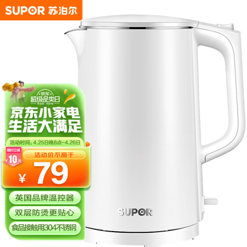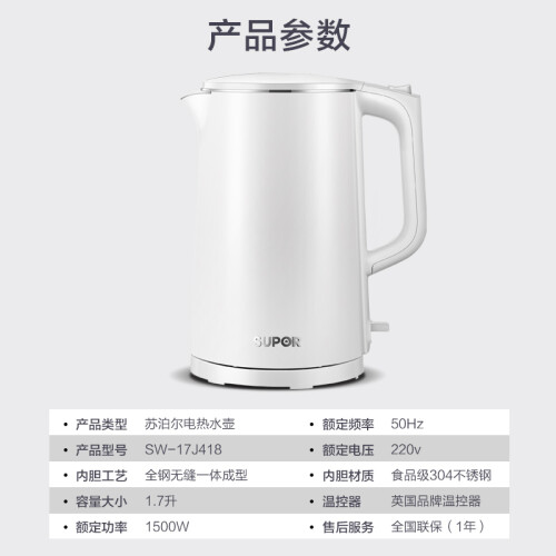 当前的位置: 首页 > 今日值得买 > 苏泊尔(SUPOR)电水壶 双层防烫烧水壶热水壶 全钢无缝内胆电热水壶SW-17J418 1.7L大容量