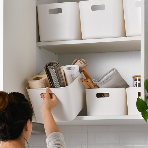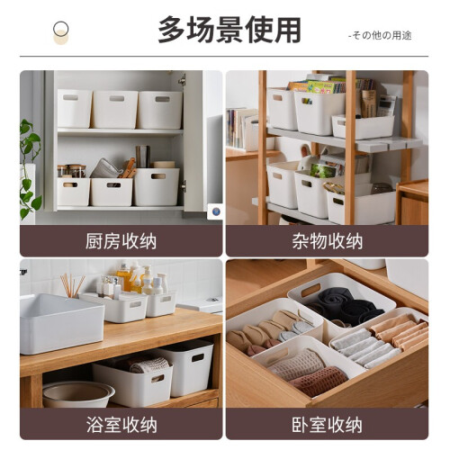 久梨沙大中小组合款简约收纳筐,pp材质,耐用厚实,两侧弧型提手,方便提取,加高弧形圈,贴心好用。可收纳客厅杂物,摆放于浴室收纳台,厨房水池下方收纳工具、疏通剂。