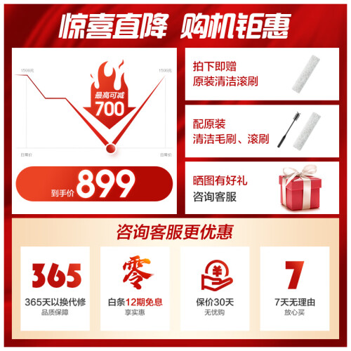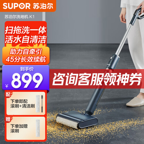 这款苏泊尔洗地机,带有免拆洗,支持一键自清洁。带有单独垃圾盒、污水箱,固液垃圾分开储存,处理垃圾更方便,不怕垃圾混合堵水道。可162m2* 打扫,运行时间45分钟。机身可165°躺平,低处好清扫。自驱牵引,使用不费力。2.4kg轻量主机,随取随用无束缚。