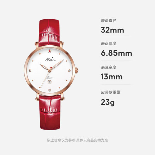 EBOHR 依波表 卡纳系列 女士石英手表 36520145,加硬石英玻璃表镜,光感通透,经久耐用不易刮花。玫金色表冠,齿轮设计,更便调时。30米生活防水,密封防水工艺,轻松应对洗手、水花、雨水。舒适皮质表带,配针形扣,调节大小更方便。