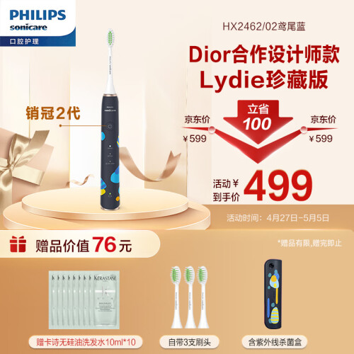 当前的位置: 首页 > 今日值得买 > 飞利浦电动牙刷成人情侣款 礼物 带3支刷头+杀菌牙刷盒Lydie Bossuet-Dior合作设计师款HX2462/02蓝