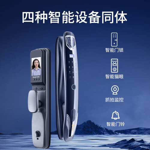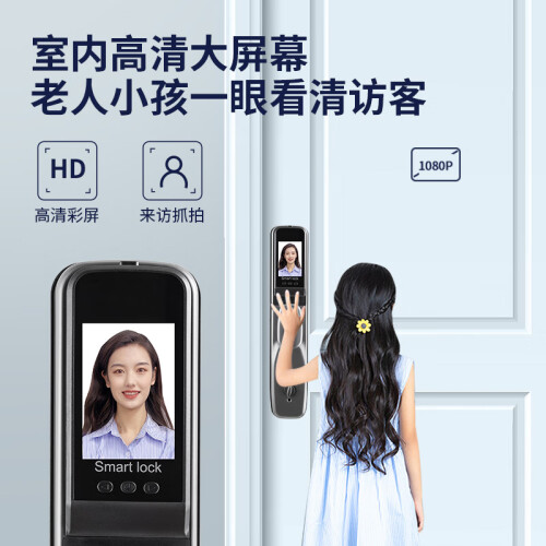 全自动智能锁,WiFi智控,全钢锁体,C级锁芯,防盗防撬警报抓拍,手机远程,大屏猫眼,一握即开,霸王锁体,支持刷卡,密码及NFC蓝牙远程解锁,微信生成零时密码,客人到访以及家政服务无需等待。