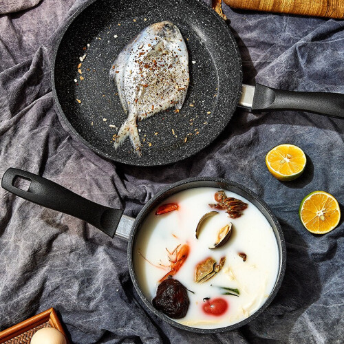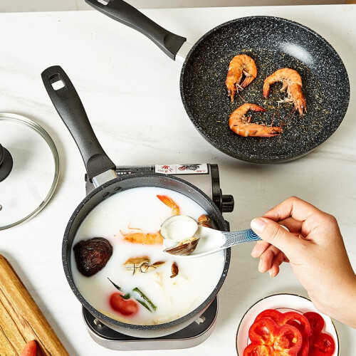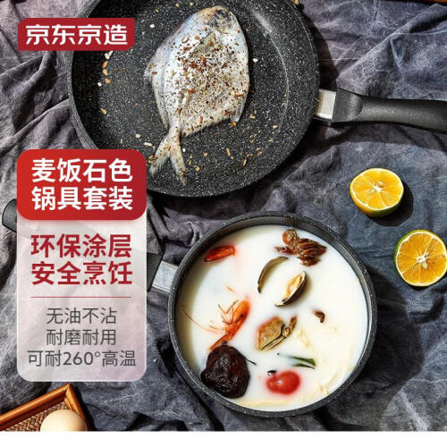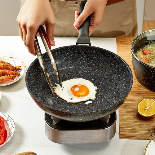 无PFOA涂层,安心烹饪无负担。2层涂敷,可耐260℃高温。耐磨耐用,放心翻炒,锅体表面添加特殊微粒,耐磨性提升,轻松承载多种食材,使用随心。荷叶仿生技术加持,无油也不粘。简约大气,麦饭石色不粘,易清洗~