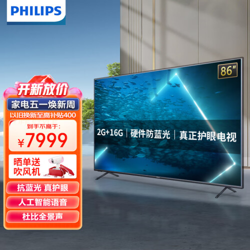 飞利浦的这款86PUF7384/T3液晶电视,拥有86英寸的超大屏幕,让你在家就能享受到影院般的观看体验。搭载P5画质增强引擎,提升画面的清晰度和对比度。2G+16G超大容量,过癌不卡顿,强大运算处理能力,下載也能随心所欲。遥控器智能语音,让操作更简单,精准识别关键词,多轮连续对话,惺你所想。