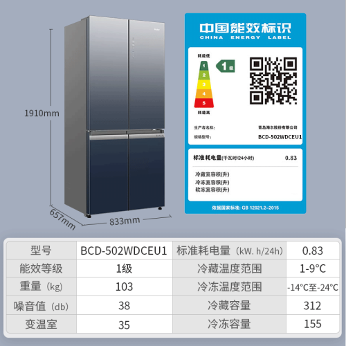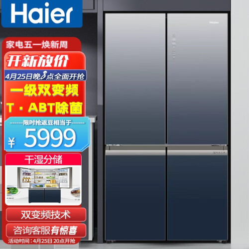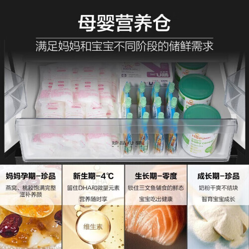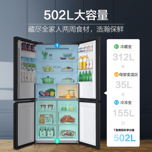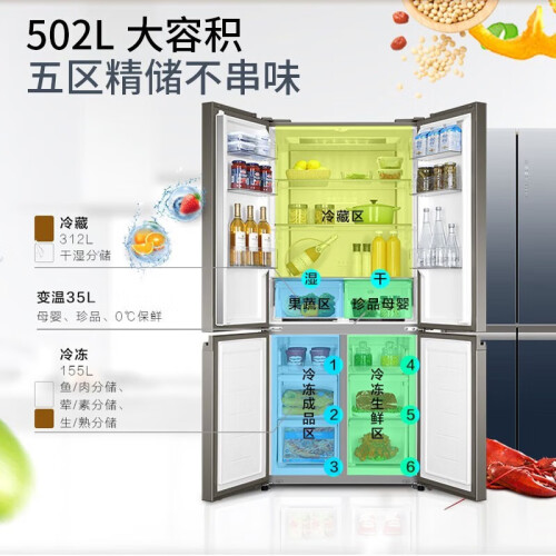 海尔BCD-502WDCEU1冰箱采用了独创的ABT动态杀菌技术,天然的石质杀菌,利用碧玺石释放负离子和纳米阴离子,杀菌率达到了99.99%,可24小时巡航,清除异味的同时又节能,让食材更新鲜健康。一级的能效更加省电,搭配双变频技术,优质的变频压缩机,节能又降耗,使用寿命更长一些;双离心的变频风机,更加的稳定运行,同时配合温度智能传感器控温节能更静音。拥有502L的大容量,还划分了冷藏区、珍品区、果蔬区、冷冻成品区、冷冻生鲜区五区精储,食材能够精细化管理,不易串味且方便快捷。一区可以做到保鲜、珍品、4℃母婴三种模式使用,新鲜模式随心的调换。具备了干湿分储两种方式,低氧保湿区相对湿度在90%左右,升级的渗透气化膜,透水不透气,能够保证食材的原鲜水润。干货珍品区相对湿度45%左右,其中使用到微风道科技,使存放珍品干货不返潮、不风干。
