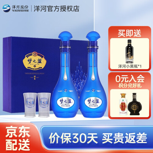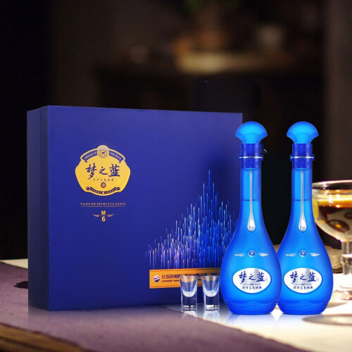洋河梦之蓝是洋河蓝色经典系列中的高档产品,洋河酒厂作为中国第三大白酒品牌,蓝色经典系列酒实际也是其主打产品。其分有M1、M3、M6、M9和手工班五个档次,数字越大档次越高。M6是洋河酒厂之前的高端产品,色彩内敛与稳重的盒子设计,幽雅而不失动感的内置瓶子设计,尽显“蓝钻之梦”的寓意。 采用多粮型酿造技术,在北纬33度酿酒黄金带,酿酒生态环境得天独厚,粮曲香突出,窖香、糟香、醇香、蜜香协调其中,其窖香是江淮浓香带有一丝水沟气息的窖香。入口柔和,尾味偏甜。整体香气饱满而易饮。