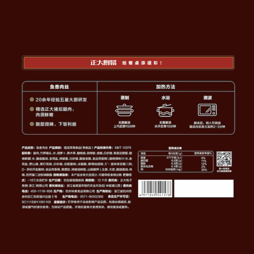 CP 正大食品是正大集团旗下的一个食品品牌,包括鸡鸭猪等生鲜和熟食系列产品。这款鱼香肉丝选用正大优质后腿肉加多种蔬菜匠心搭配调理而成,嫩滑肉丝+酸甜汤汁,丝丝入味爽滑诱人,开胃下饭,规格:300g。