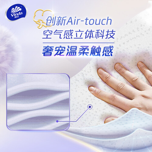 空气感棉柔技术,打造了羊绒般的亲肤触感,擦屁屁的时候只会感觉到棉花糖般的柔软,温柔呵护你的屁屁肌肤,特别适合有痔青年、带娃宝妈、精致男女去使用。