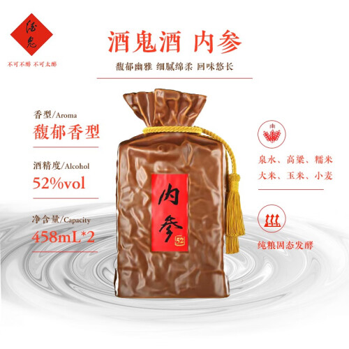 酒鬼内参是酒鬼酒股份有限公司出品的一款高端馥郁香型白酒,属于内参系列。酒鬼酒是馥郁香型的代表、湖南特产酒,老牌名酒,有辉煌的过去,虽然后来经历坎坷,但也是一大上市白酒企业。酒鬼酒是运用小曲糖化、大曲发酵而成的酒,其风格与浓酱清米兼五大主流香型酒相比更接近兼香酒。主打坛系列和内参酒。坛系列是偏大众的酒,内参酒是其高端酒。酒鬼内参是是酒鬼高端酒的基础产品,香气是标准的馥郁香,入口柔和,酒体醇厚连绵,粮曲香有所弱化,窖香较为突出,回味更多展现了焦糊窖香的复合香。其包装由黄永玉大师设计,并亲笔题写“内参”两字。采用酒鬼酒公司多年积累的特级原酒调制而成,限量生产,定量销售。