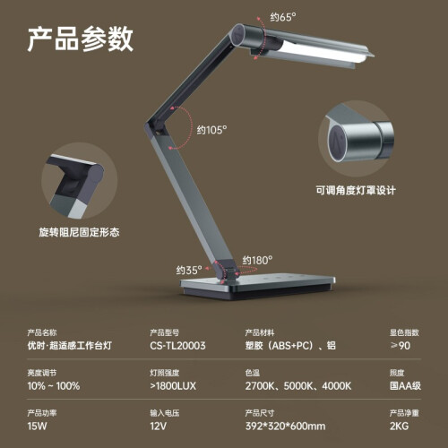①大班台、老板桌、总裁办公桌等超大工作台面必备的高端台灯,营造时尚气派的格调,彰显个人品味。 ②多角度旋转折叠,实现超广照明范围,并具有办公、阅读、休闲多种照明模式。 ③国际顶级设计师亲自操刀设计,独特的机械手臂造型,荣获外观设计专利证书。