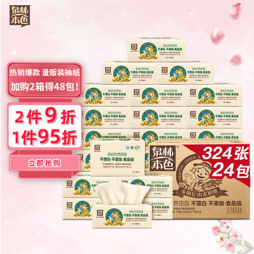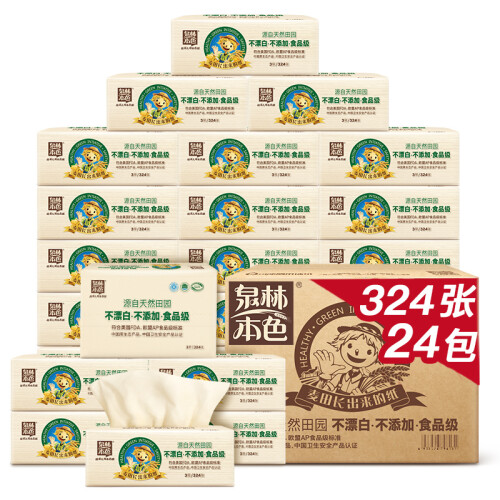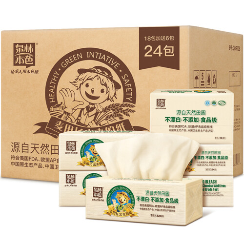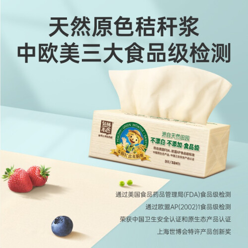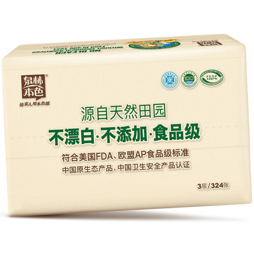 泉林本色田园系列:采用天然原生秸秆浆制造,秸秆纤维细小,无需研磨分裂,摩擦或者撕裂也不会掉纸屑;纸质无漂白剂,呈浅黄色,自然柔和,吸水性强,亲肤不刺激,带有淡淡的清香味;不含可迁移性荧光增白剂,不含化学粘合剂,不含二噁英等,环保健康;而且通过欧美标准食品级检测,还采用高温杀菌技术,使用更加舒适、安全;加厚纸张,健康不堵塞,能在水中快速分解,外包装采用全透明,磨砂质感的设计,能一目了然商品的材质。质量有保障安全看得见。