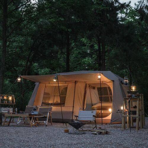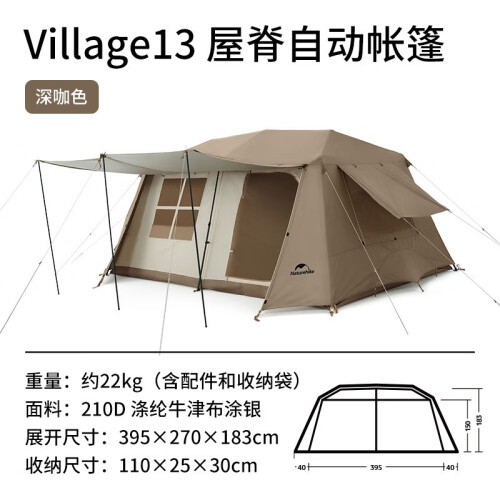 高配两室-厅更添舒适惬意,13平米大空间两室,搭配宽敞大前厅,不论晴雨都能在户外悠闲品茶,一体式支架,搭建简易不费力,所有帐杆都是相连结构,简单组装即可一体成形;涂银工艺,科学防晒,面料反面遮光涂银层工艺,有效减少UV-A/UV-B对皮肤的伤害;加密牛津布,防水2000mm;五面通风,自然明亮通透,内账四面和顶部皆可敞开通风,全窗覆盖网纱,透气同时有效防虫;多种打开方式,前后4片门厅全部可撑可收,自由组合出更舒适的帐内环境。