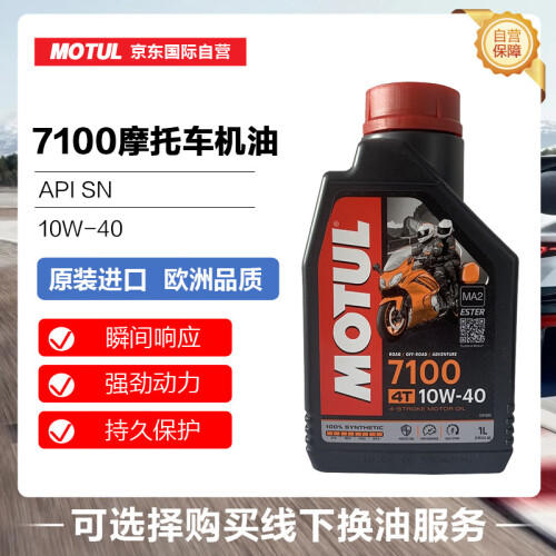 本款机油为脂类全合成配方,适合四冲程摩托车使用,低噪音、低振动、低温易启动、换挡顺畅,粘度为10W-40,容量为1L装,保质期为3年,厂商建议换油周期为3000km。