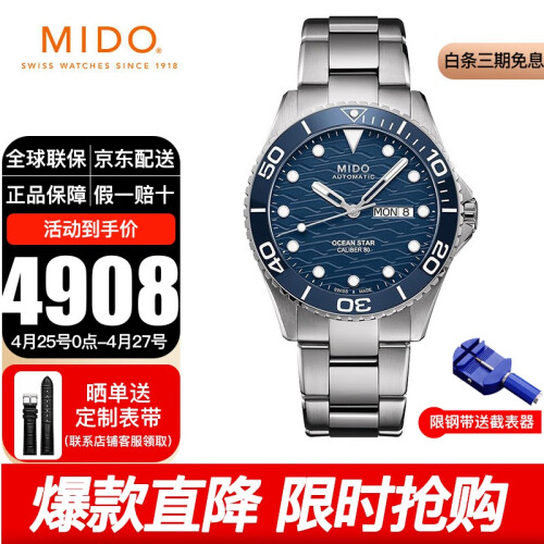 此款产品为MIDO 美度 领航者系列 男士自动机械表 M042.430.11.041.00,灵感源于欧罗巴角灯塔灯塔以明亮的灯光为航海者指明了方向,是指引征服海洋的建筑象征为其佩戴者和水下运动爱好者提供坚实的时计配备。适用冲浪,帆船,浮潜潜泳等水上运动,动力储备80小时,防水深度200米,双面防眩目蓝宝石玻璃表镜。